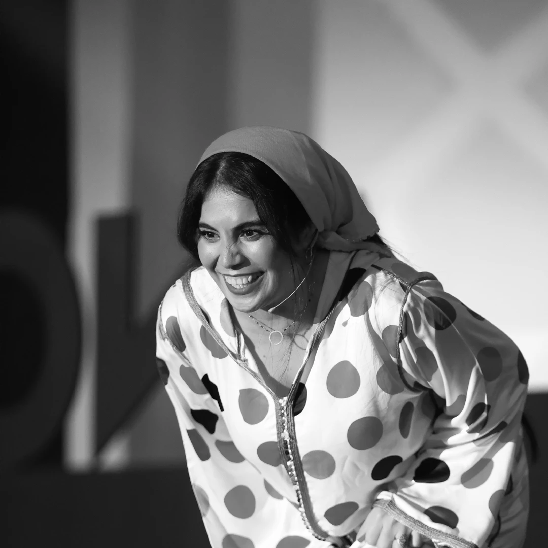 Hanane Fadili fait rire le monde depuis plus de 30 ans ! Fille d’Aziz el-Fadili, humoriste, et marraine du one-woman show au Maroc, elle a commencé à imiter à 8 ans (et franchement, ça ne s’est jamais arrêté !). Entre sketchs hilarants, transformations improbables et imitations de situations à mourir de rire, elle est l’incarnation de la comédie marocaine.